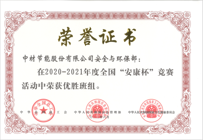 中材節(jié)能安全環(huán)保部獲2020-2021年度全國“安康杯”競賽優(yōu)勝班組榮譽稱號